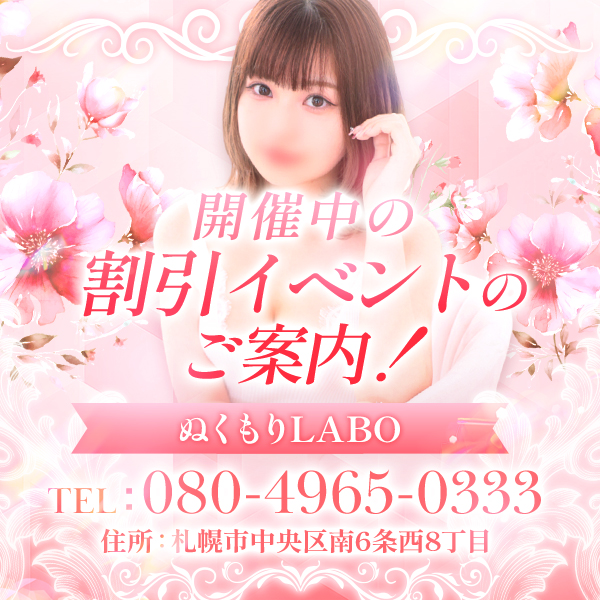 2026/03/25~ぬくもりLABO~至高の密着施術と温感ジェルでお客様の心にアプローチする、安らぎと癒しの時間をぜひご体感ください。 ストレスと悩みに溢れたこの時代。必要なのはやはり《温もり》ではないでしょうか。 在籍セラピストはこちらのコンセプトを体現すべく厳正なる審査を通過した極上の女性ばかり。 至高の密着施術と温感ジェルでお客様の心にアプローチする安らぎと癒しの時間をぜひご体感ください。 すすきのから少しだけ離れた都会の喧騒をシャットアウトした完全予約制のプライベート空間にて「心」と「体」の触れ合いによる最高のおもてなしをお約束いたします。 真心溢れるセラピストとの贅沢なひと時をご堪能下さいませ。 今後も「温もりをもらえる」隠れ家として、お客様に長く愛される店舗作りを続けて参ります。何卒、宜しくお願い申し上げます。 20代から30代の選りすぐりのセラピストさんが在籍 全員が手抜き一切なし!ハイレベルの「おもてなし」を体現致します。至高の密着施術と温感ジェルでお客様の心にアプローチする安らぎと癒しの時間をぜひご体感ください。 新感覚!とろーり、あったか温感ジェルが標準仕様 あったか温感ジェルを使用した施術が標準仕様となっております体の芯からぽっかぽかになる新感覚の癒しをご体験ください。